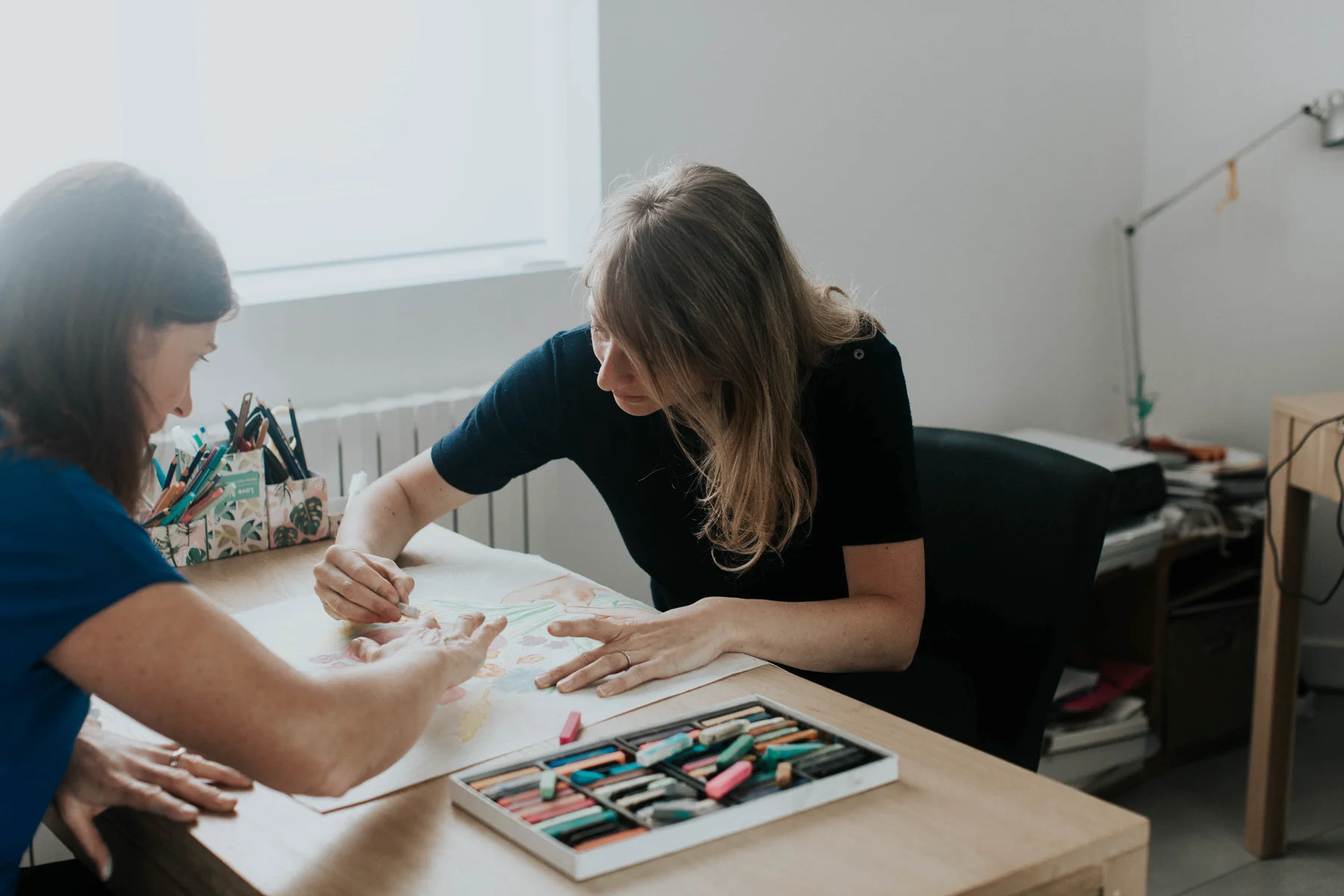 L’art-thérapie est particulièrement adaptée lorsque la fatigue est déjà très présente, que les émotions sont difficiles à exprimer ou que le mental est saturé. La création permet alors de relâcher la pression et de se reconnecter à soi en douceur même quand on ne « sait » pas dessiner.